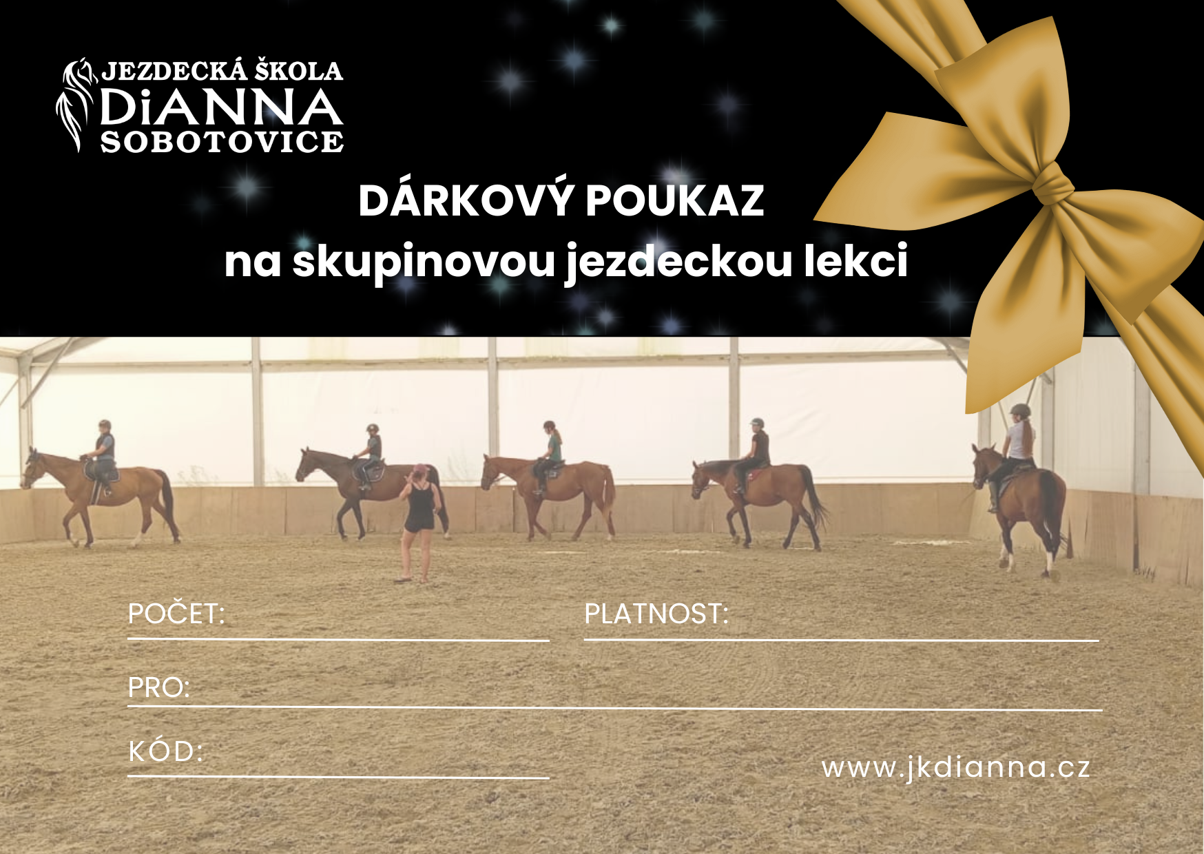 Pro možnost využití je třeba si následně založit účet v rezervačním systému dle pokynů, obdržených na email. Hodnota permanentky se promění v 10 kreditů na skupinové jezdecké lekce, kdy 1 lekce má hodnotu 1 kreditu.
